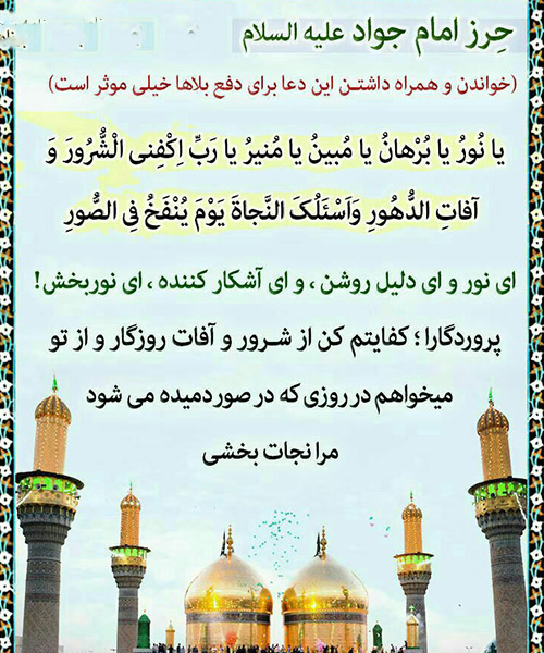 سفارش می نمودند به خواندن نماز امام جواد علیه السلام و می فرمودند :در نیت نماز بگویید نماز امام جواد علیه السلام می خوانم به این امید که ایشان جواب من را به خاطر پدرشان امام رضا علیه السلام بدهند.