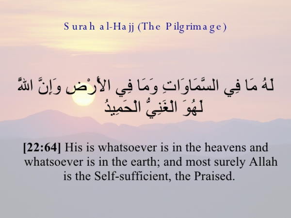 1- هستى محتاج ونيازمند است و او تنها بىنياز. إِنَّ اللَّهَ لَهُوَ الْغَنِيُ …