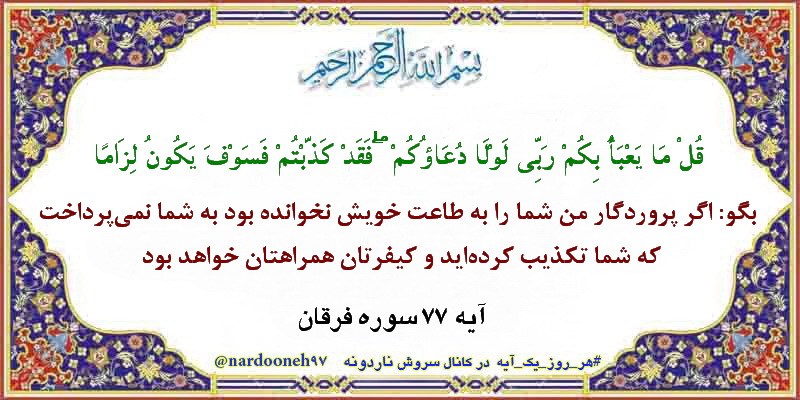«قُلْ مَا یَعْبَأُ بِکُمْ رَبِّی لَوْلَا دُعَاؤُکُمْ فَقَدْ کَذَّبْتُمْ فَسَوْفَ یَکُونُ لِزَامًا»